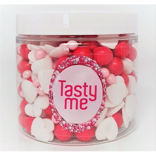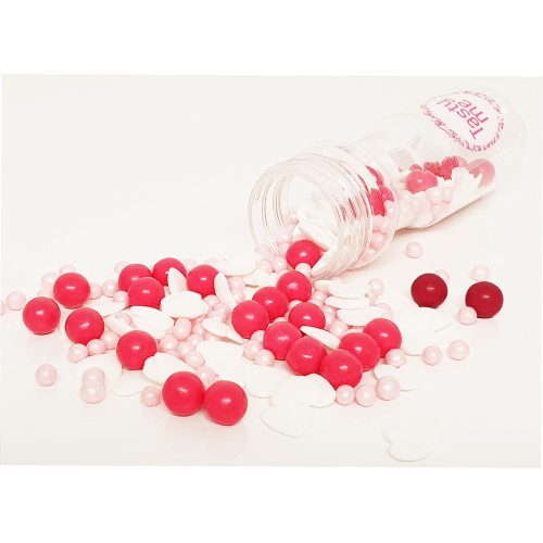 Lahodná zmes cukrového posypu v štýle lásky. Tieto jedlé ozdoby sú dokonalým spôsobom, ako ľahko vytvoriť veľkolepú dekoráciu torty. Tento sortiment dodá vašim výtvorom dokonalý vzhľad. Posypky sú ideálne na zdobenie veľkolepých tort, koláčikov, šišiek a dokonca aj zmrzliny. Jednoducho posypte svoje lahodné dobroty, akokoľvek sa vám to páči.