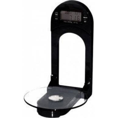 Závesná digitálna váha, ku ktorej je pripojený sklenený okrúhly podnos, na ktorý sa ukladajú vážené pochúťky. Maximálne zaťaženie váhy je 3 kg. Okrem aktuálnej hmotnosti sa zobrazuje aj čas. Výrobok disponuje funkciami, ako sú stopky alebo časovač. Nástenná váha má sklopné rameno a je napájaná tužkovými batériami.