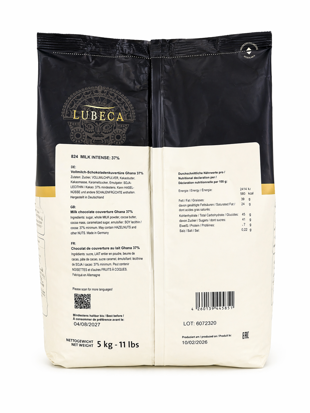 Mliečna čokoláda Lubeca Vollmilch 35 % – Pobrežie Slonoviny, 5 kg