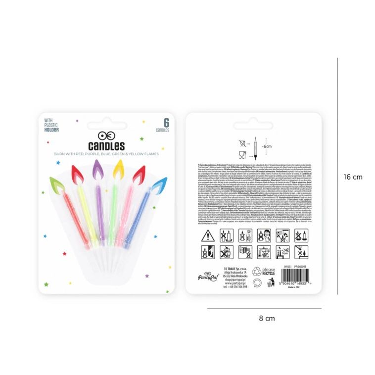 Narodeninové sviečky s farebnými plameňmi, 6 ks