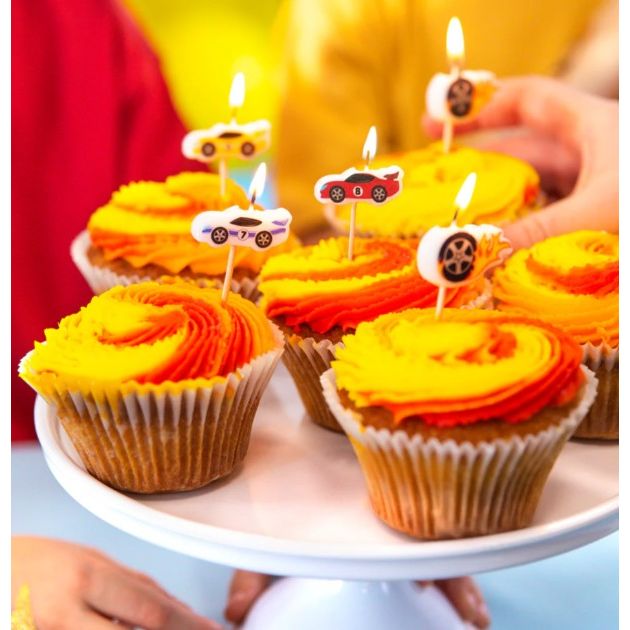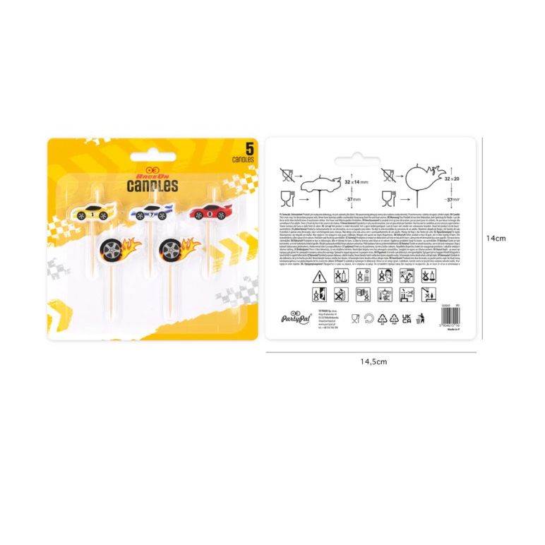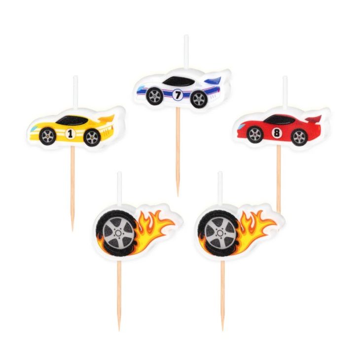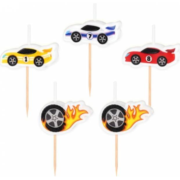 Narodeninové sviečky v tvare pretekárskych áut, 5 ks