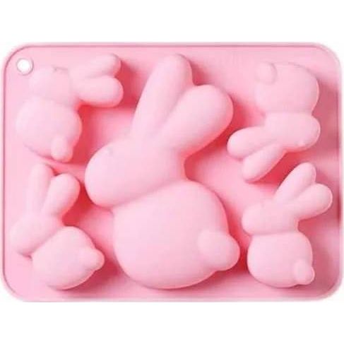 Kvalitná silikónová forma na výrobu pochúťok v tvare zajacov. Rozmer formy: cca 21 x 16 cm Rozmer zajaca: najväčší 14 cm, najmenší 7,5 cm Použitie: Do formy nalejte pripravenú zmes a dajte zmraziť alebo upiecť. Vhodné na cesto, čokoládu, fondant, isomalt a želatínu.
